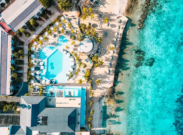 From a relaxing morning swim to a refreshing break in the afternoon: at Plaza Resort Bonaire you will find three swimming pools, each with its own character. Two of them are specially designed for relaxation, with sea views, comfortable sunbeds, and a laid-back atmosphere. The third pool is mainly used for learning to dive. This pool is extra deep, and through windows, the dive instructor can see if the breathing is going well. Whether you want to float in the sun or swim actively, there is always a pool that suits your moment.